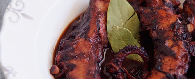 Υλικά χταπόδι (ξεπαγωμένο) 1500 γρ κρεμύδια ξερά κομένα σε μισοφέγγαρα 3 Ξύδι 230 ml κρασί κόκκινο 700 ml Ελαιόλαδο 100 ml φύλλα δάφνης 1 Ζάχαρη 6 γρ νερό 500 ml Εκτέλεση 1.Σε μια κατσαρόλα βάζουμε το ελαιόλαδο να κάψει και σοτάρουμε ελαφρώς τα κρεμμύδια. 2.Βάζουμε το χταπόδι Ema Foods, σβήνουμε με το κρασί και προσθέτουμε το ξύδι, το νερό, τη ζάχαρη και το φύλλο δάφνης. 3.Βράζουμε σε χαμηλή φωτιά μέχρι να μαλακώσει το χταπόδι (περίπου 1 ώρα και 45 λεπτά, εάν χρειαστεί προσθέτουμε λίγο νερό). Όταν είναι έτοιμο θα έχει λίγα υγρά σε σκούρο χρώμα. Σερβίρετε το ζεστό ή κρύο. [...]